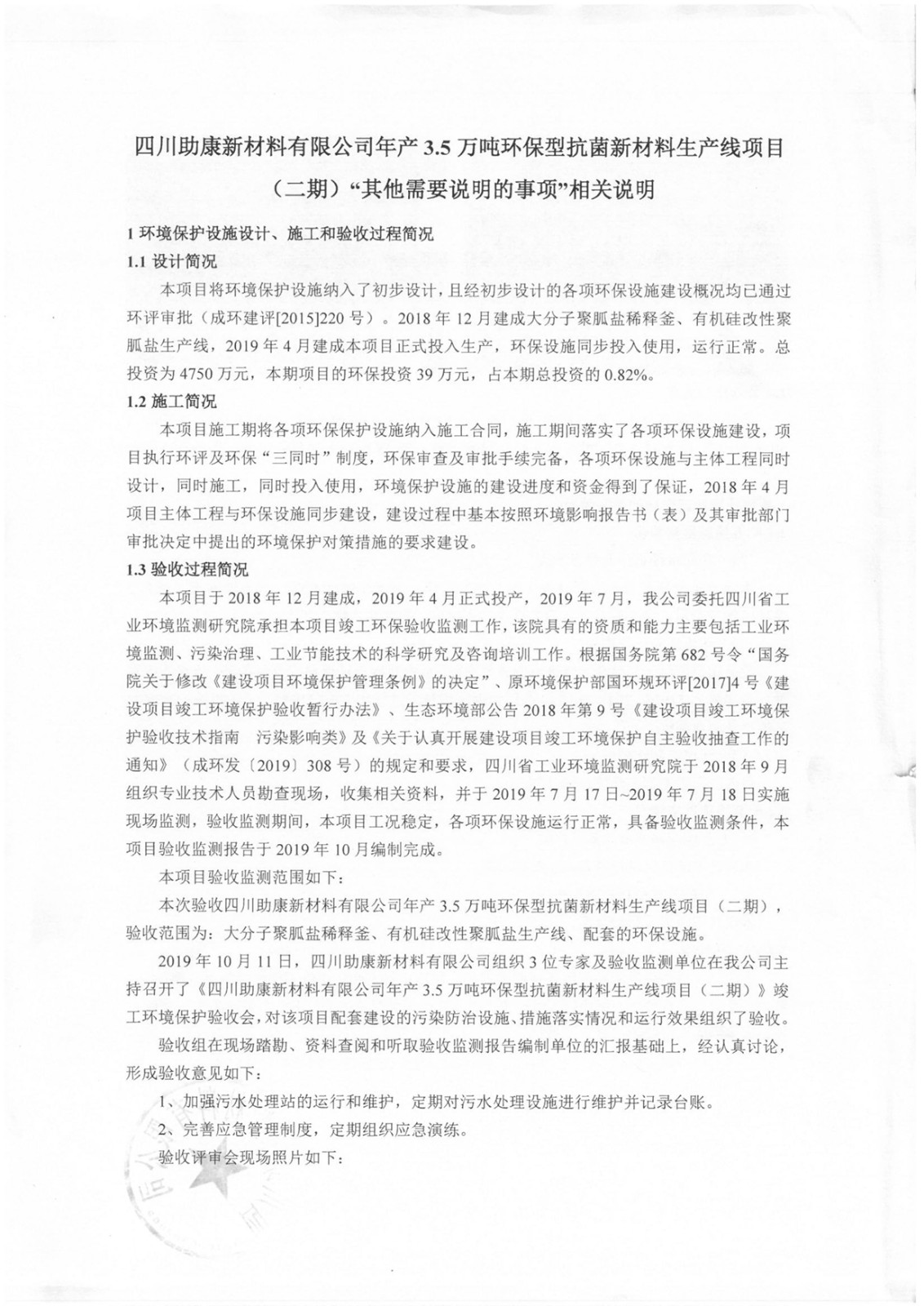 关于四川助康生产线(二期)项目竣工环境保护验收公示