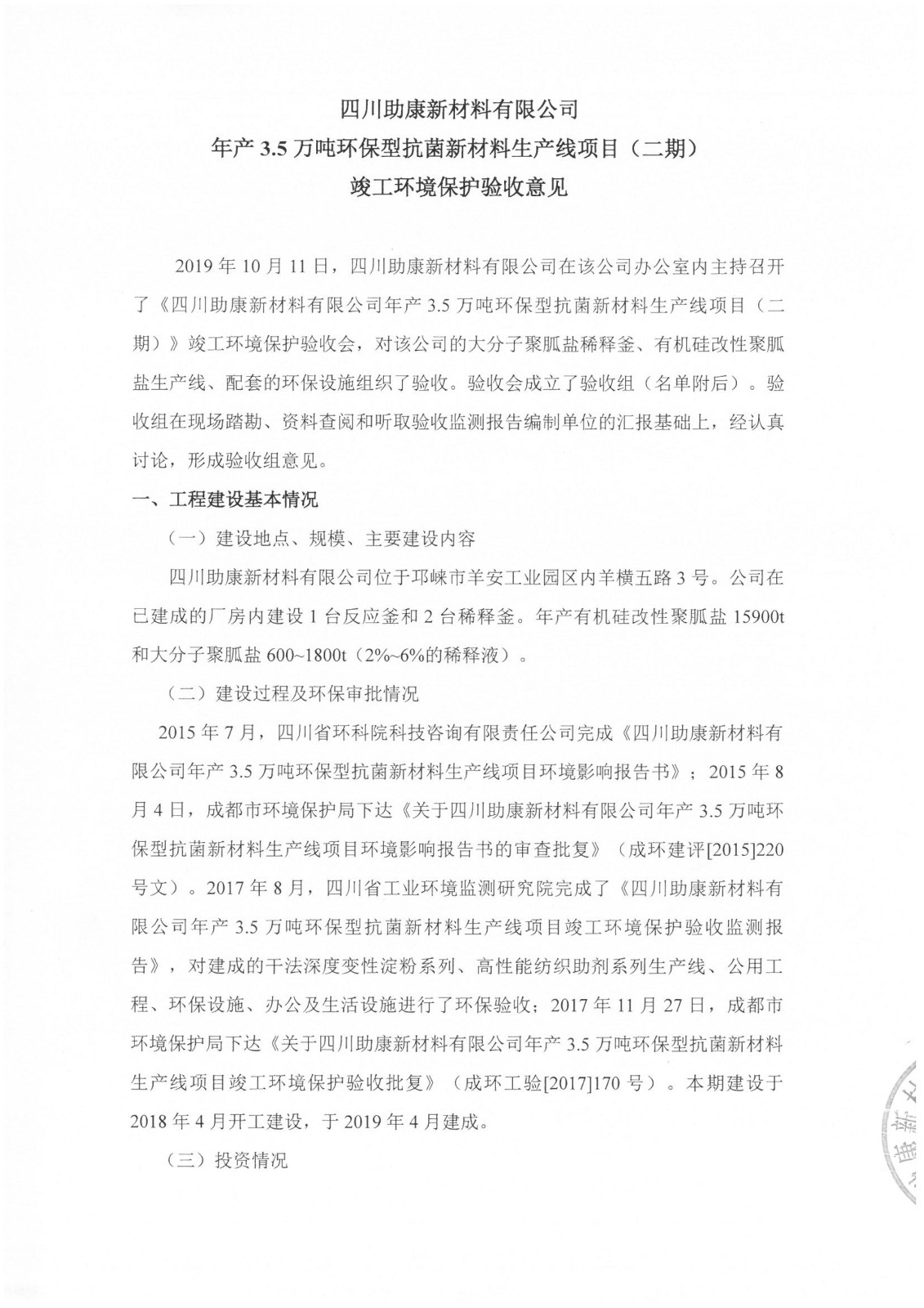 关于四川助康生产线(二期)项目竣工环境保护验收公示